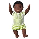 Стимулирует развитие социальных навыков. Играя, дети подражают взрослым и придумывают свои роли. Ноги сгибаются, поэтому кукла может сидеть. Рекомендовано для детей от 1,5 лет. Длина: 46 см. Ткань: 100% полиэстер. Наполнитель: Полиэстерное волокно.