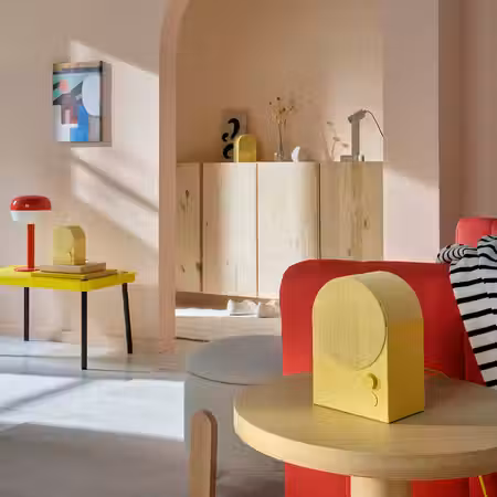 Уйти как можно дальше от привычного “технодизайна" — так я задумывала KULGLASS, лампу-колонку. Хотелось предмета, который обращается ко всем чувствам: мягкого, округлого, дружелюбного — вызывающего ностальгию и радость. На меня повлияли и нежное мороженое софт, и цветение сакуры, и классический ар-деко, и японские куколки кокэси. Мне нравится идея объединить колонку и лампу — это новый взгляд на домашнюю обстановку и роль вещей в ней