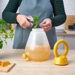 Этот кувшин современного дизайна добавит сервировке стола выразительности. Отличное решение, если вы хотите добавить в напиток фрукты или зелень. Удобно переносить благодаря крышке с ручкой. Рекомендуется использовать только для холодных напитков.