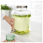 Только для холодных напитков. Чтобы кран работал, крышку следует немного приоткрыть, так как с закрытой крышкой в кувшине образуется вакуум. Ширина: 18 см. Высота: 28.5 см. Объем: 5.5 л. Основная часть: Стекло. Металлические части: Нержавеющая сталь.