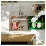 На широком заднем бортике мойки ЛОНГУДДЕН достаточно места для моющих средств, губок и щеток, чтобы не занимать поверхность столешницы.