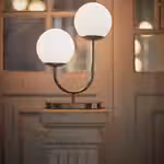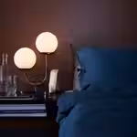 Светильники СОЛКЛИНТ, похожие на нежные украшения из золотистой латуни со сверкающим абажуром из серого стекла, дают мягкий атмосферный свет и создают на стенах и потолке красивую игру света и тени, где бы вы их ни включили.