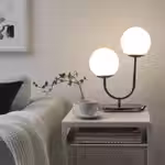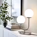 Стильный современный светильник серии СИМРИСХАМН из стекла и хромированной стали создает в доме располагающую атмосферу.