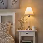 Текстильный абажур, мягко рассеивающий свет, создает в комнате уютную и располагающую атмосферу.