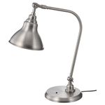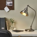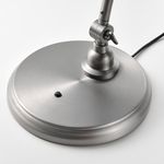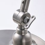 Брашированная поверхность напоминает олово, провода выполнены в черном цвете, а штатив и абажур легко регулируются.