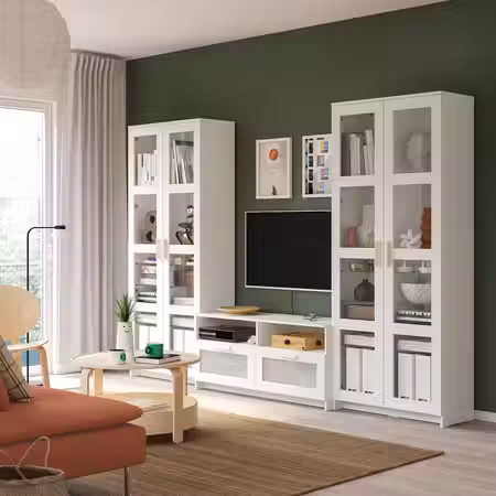 BRIMNES 796.024.37 Комбинация для ТВ/стеклянные дверцы - белый 280x41x190 см
