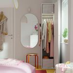 Узкая дверь занимает меньше места в открытом положении, а это очень удобно в тесных пространствах — например, между гардеробом и кроватью или в коридоре.