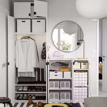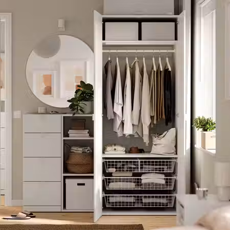 Аксессуары для организации хранения в гардеробе продаются отдельно.