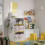 Открытые полки отлично подходят для хранения книг и предметов коллекции, а также выставки лучших рисунков или поделок ребенка: собственные успехи стимулируют его к новым достижениям.