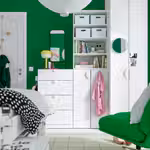 Открытые полки отлично подходят для хранения книг и предметов коллекции, а также выставки лучших рисунков или поделок ребенка: собственные успехи стимулируют его к новым достижениям.