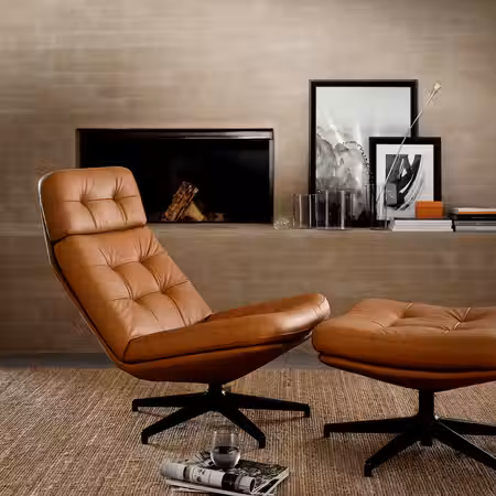 Дизайн этого вращающегося стула отличается плавными линиями и комфортными материалами.