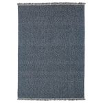 Тёмно-синий безворсовый ковёр LOKBYTE с зигзагообразным рисунком дополнен бахромой на коротких сторонах.