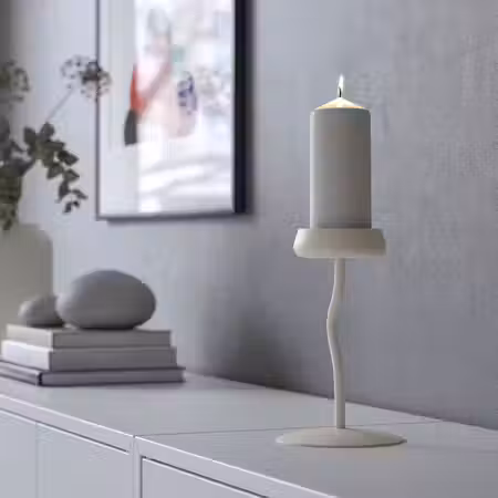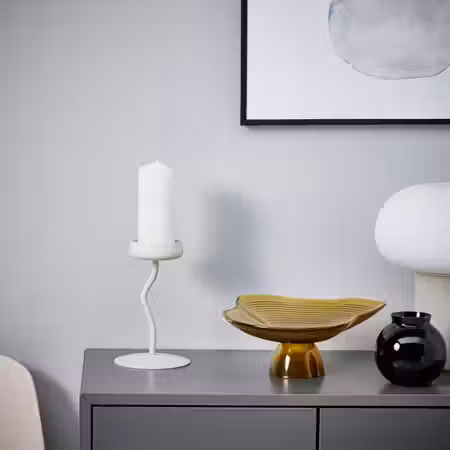 Дополните более высоким черным подсвечником для создания графичной и динамичной композиции.