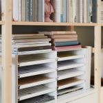 Лотки для корреспонденции помогают освободить место на столе. Выдвижные отделения обеспечивают легкий доступ к содержимому, а простые материалы, таким как белый металл и кора пробкового дерева, прекрасно смотрятся в офисе и дома.