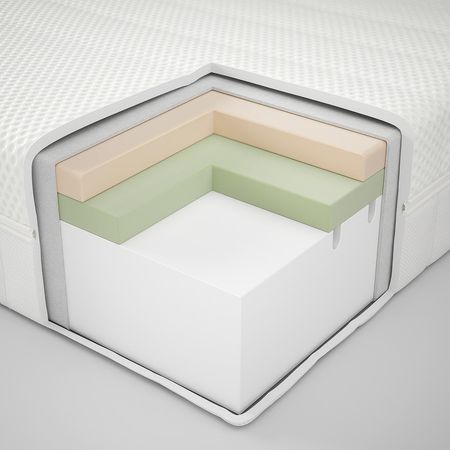Основание кровати LYNGÖR с плоскими ламелями образует ровную плоскую поверхность для матраса.