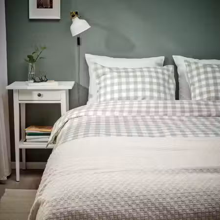 Ткань Карсхув в классическую полоску нейтральных тонов делает этот чехол актуальным во все времена.