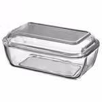Масленка простой формы выполнена из прочного и толстого стекла, которое защищает масло от запахов и бактерий.