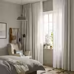 Длина 300 см позволяет повесить гардину под потолком и визуально увеличить высоту, либо можно повесить её над окном и оставить ниспадать на пол.