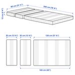 С помощью двух дополнительных частей длину матраса можно увеличивать со 130 см до 165 и 200 см по мере роста ребенка.
