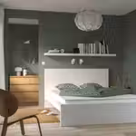 Каркас кровати ГЛАДСТАД с обивкой имеет лаконичный современный дизайн.