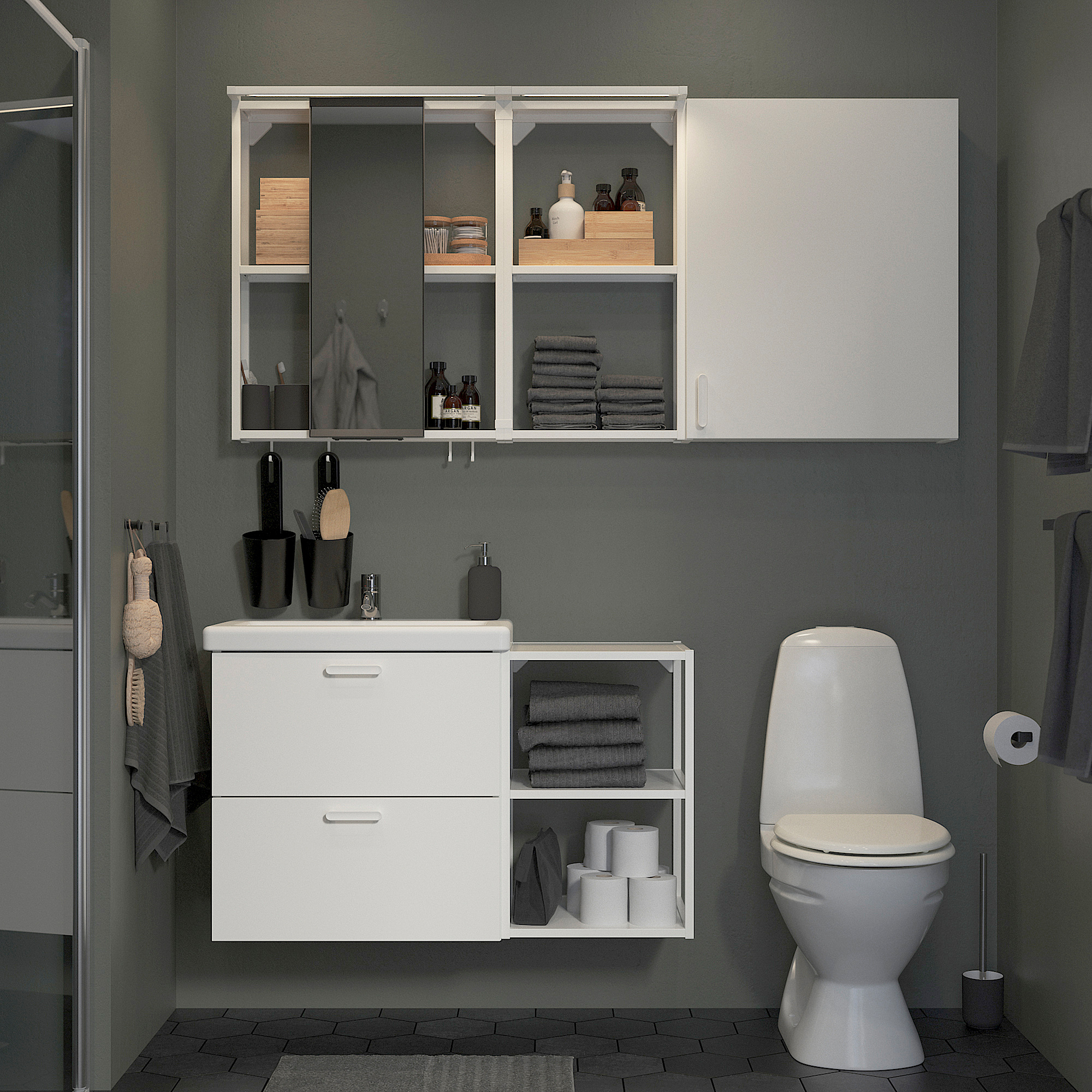Дополните аксессуарами ЭНХЕТ и расширьте функционал комбинации для хранения. А самое приятное, что для их установки не придется сверлить отверстия. Продается отдельно.