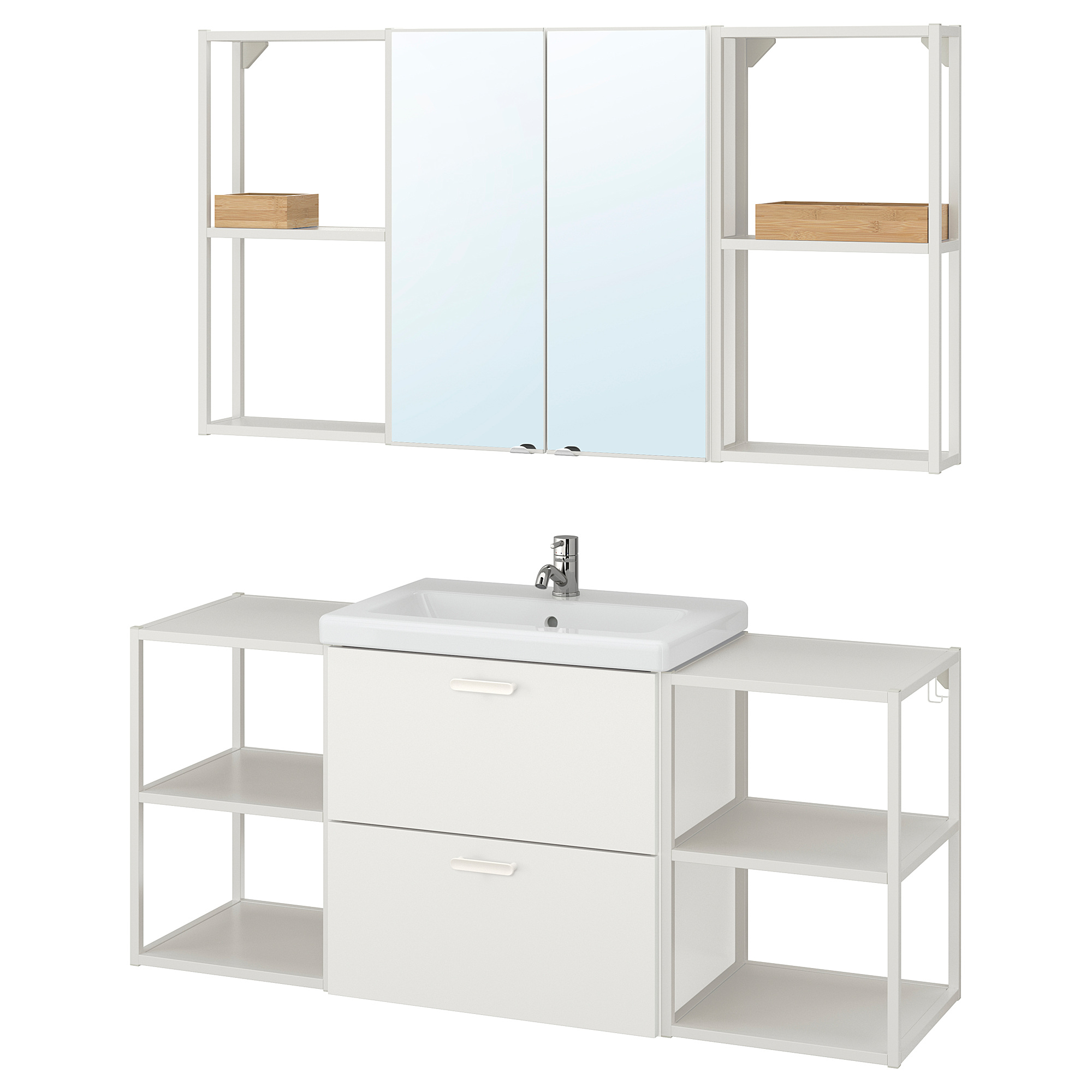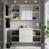 Утро в вашем доме. Какое оно? Хочется, чтобы в ванной было удобнее? Серия ЭНХЕТ призвана оптимизировать пространство и адаптировать ванную к вашим потребностям. Комбинируя открытое и закрытое хранение, можно спрятать в шкафах то, что вы бы не хотели показывать, или то, что не предназначено для детей, а на полки поставить предметы, которые вам нравятся.