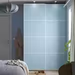Двусторонние панели MEHAMN идеально подходят для создания разных решений для хранения и зонирования комнаты с помощью систем PAX и SKYTTA с раздвижными дверцами.