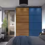 Двусторонние панели MEHAMN идеально подходят для создания разных решений для хранения и зонирования комнаты с помощью систем PAX и SKYTTA с раздвижными дверцами.