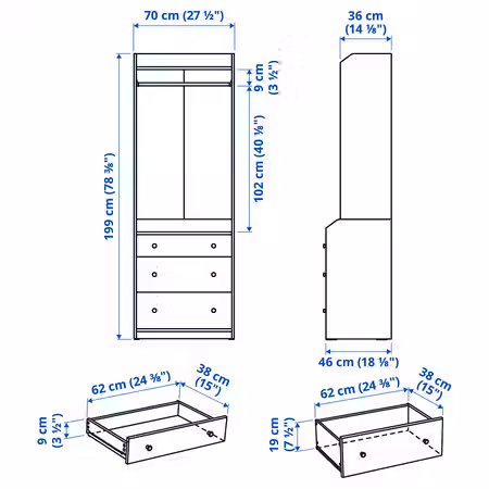 Подходит для гардеробов ПАКС.