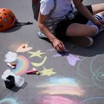 В набор входит: 1 пластиковая коробка с крышкой, 3 белых мелка и 6 цветных мелков.