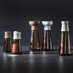 «Одной из идей создания емкостей ХАЛВТОМ для специй было придание кухне стильного ресторанного облика. Они, как небольшие статуэтки, смогут радовать ваш глаз и всегда будут под рукой во время готовки и даже при сервировке стола. Коричневое стекло смотрится тепло и уютно, а также обеспечивает более оптимальные условия для хранения специй, чем прозрачное. Эти товары выглядят просто, но придают интерьеру яркий характер».
