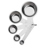 В набор входят емкости на 1 миллилитр, 1 чайную ложку, 1 столовую ложку, 1/2 децилитра и 1 децилитр.Вымойте изделие перед первым использованием. Нержавеющая сталь