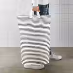 Этот мешок для белья стоит сам по себе, а когда вы захотите отнести белье к стиральной машине или веревке для сушки, просто возьмитесь за ручки и отнесите все сразу.