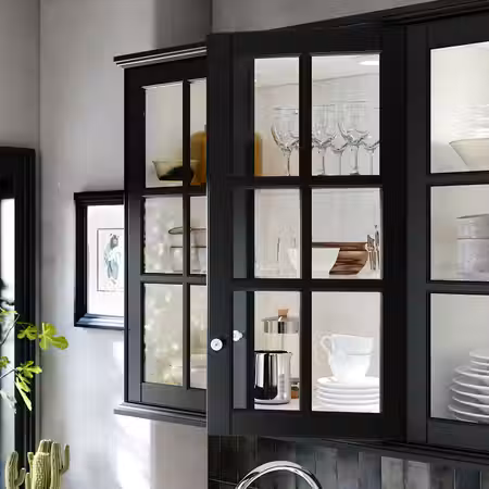 Каркас из массива дерева со скошенными краями и вставкой из шпона придает кухонным фасадам ЛЕРХЮТТАН не теряющий актуальности традиционный вид.