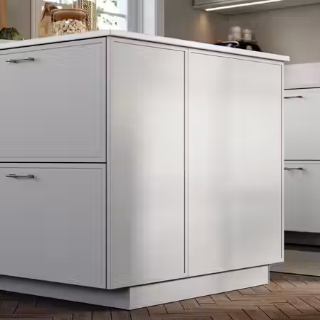 Выберите накладную панель, подходящую по дизайну к дверцам кухонных шкафов, или используйте контрастный вариант отделки панели.