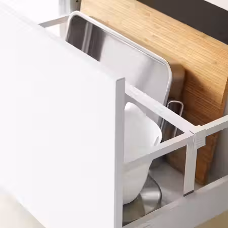 Каркасы МЕТОД — основа вашей новой кухни. Выберите напольные, навесные и высокие шкафы, которые представлены в разных вариантах ширины. Навесные и высокие шкафы также есть разной высоты. Чтобы задействовать углы, установите угловой шкаф с вращающейся секцией, которая обеспечивает удобный доступ к содержимому. Мы также создали несколько каркасов для встраиваемой духовки. Отличное решение, чтобы разместить духовку на удобной высоте. Дополните комбинацию практичными внутренними элементами УТРУСТА И ВАРЬЕРА.