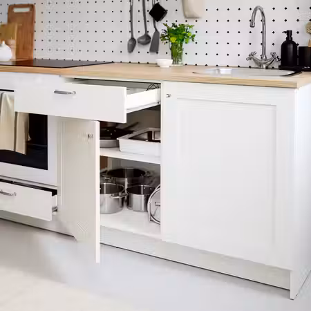 Фасады ВЕДДИНГЕ белого цвета создают непринужденную, свободную атмосферу, а мягкие чистые линии дарят ощущение покоя.