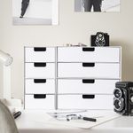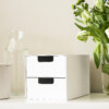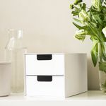 Несколько мини-комодов можно поставить один на другой, что позволяет эффективно использовать пространство в стеллаже или на письменном столе.