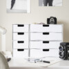 Несколько мини-комодов можно поставить один на другой, что позволяет эффективно использовать пространство в стеллаже или на письменном столе.