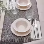 «Работая над дизайном ПАРАДИСИСК, я хотела создать традиционный сервиз. Формы и декор отсылают к классическому фарфоровому сервизу, однако эта посуда сделана из закаленного стекла, которое позволяет снизить цену и увеличить прочность. Я решила украсить ободок графичным узором из листьев. В результате получился сервиз, который всегда будет смотреться актуально и легко сочетается с любыми тарелками и мисками, которые уже есть в вашем доме».