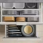 В каркасе подготовлены несколько пазов, в которые вы можете установить контейнеры и полки и в любой момент при необходимости изменить их положение.