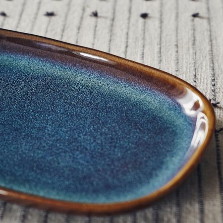 Глазурованная миска насыщенного синего цвета с золотисто-коричневым ободком станет достойной оправой для ваших кулинарных шедевров.