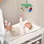 Мобильный с любимыми игрушками, установленный над пеленальным столиком, развлечет малыша во время смены подгузников.