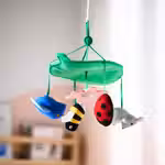 ВНИМАНИЕ! ОПАСНОСТЬ ЗАПУТАТЬСЯ И ПОЛУЧИТЬ ТРАВМУ! Подвешивайте таким образом, чтобы ребенок не мог дотянуться. Крепите только к потолку. Не закрепляйте на кроватке, манеже или стене.