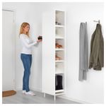 Полки можно установить горизонтально или под углом, чтобы адаптировать их под размер обуви, которую вы будете на них хранить. Удобно доставать вещи, так как полки открыты с двух сторон. 12 полок прилагаются. Мебель необходимо крепить к стене.