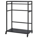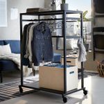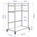 Легко передвигать благодаря колесикам. Два колесика можно заблокировать, чтобы зафиксировать модуль на месте.На боковые перекладины можно вешать крючки с мелкими аксессуарами или просто отдельные предметы одежды.