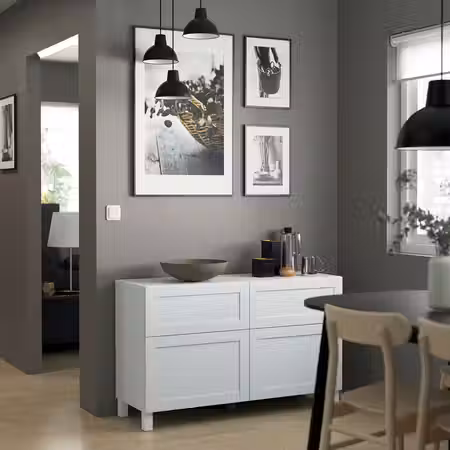 Чтобы подчеркнуть современный и лаконичный стиль интерьера, тумбу под ТВ БЕСТО можно закрепить на стене.