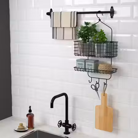 BLECKSJÖN Корзина подвесная для душа - чёрный 31x56 см