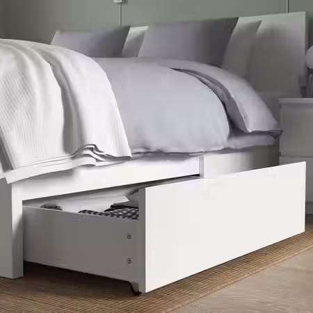В кроватных ящиках достаточно места для хранения одежды и запасных одеял.