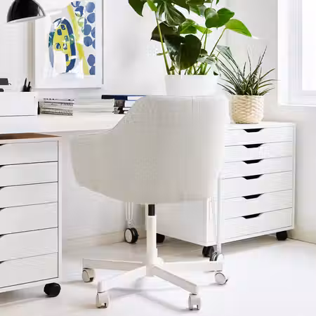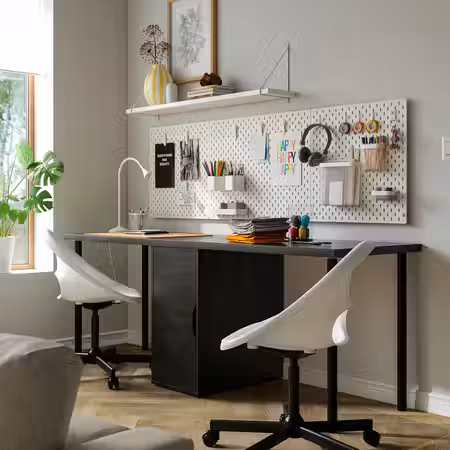 Письменный стол обеспечит достаточно места для работы и практичное хранение папок, блокнотов и других вещей, которые удобно иметь под рукой.